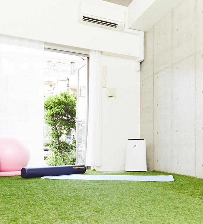 足に優しい人工芝は、負担を減らし、あなたの大切な体を守ります。清潔感があり、良い香りを漂わせた空間が更にリラックス効果を高めます。